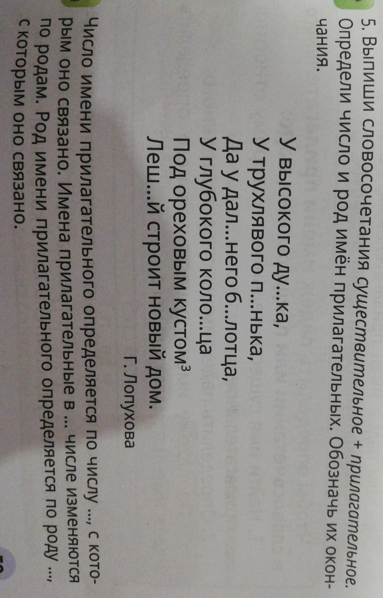 помогите пожалуйста выписать сущ +прил определить число и род имён прилагательных и окончания