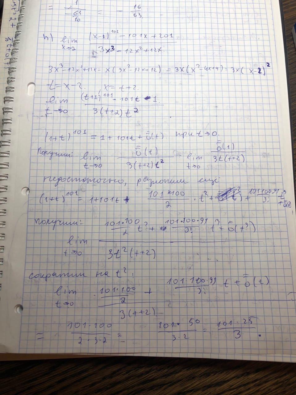 Воспользовались типичными приемами при отыскании пределов функций, а именно : разложением функции окрестности некоторой точки по формуле Тейлора с остаточным членом в форме Пеано, эквивалентность бесконечно малых, делали удобные замены, и в последнем примере воспользовались правилом Лопиталя .
