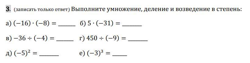 (записать только ответ) Выполните умножение, деление и возведение в степень: