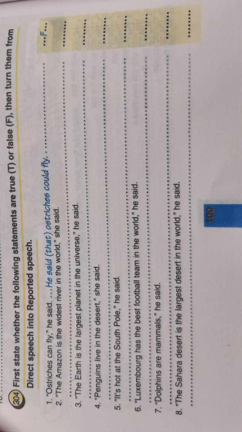 Ответ:She said (that) the Amazon is the widest river in the world. F