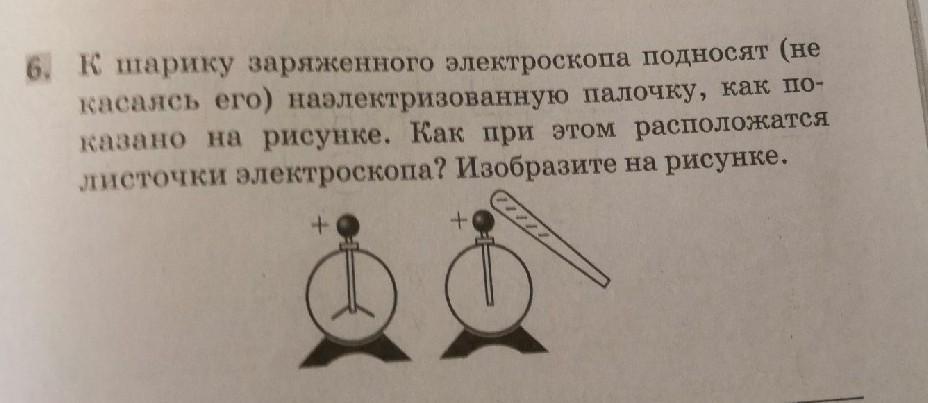 Ответ:При поднесение наэлектризованной палочки лепестки электроскопа поднимутся вверх