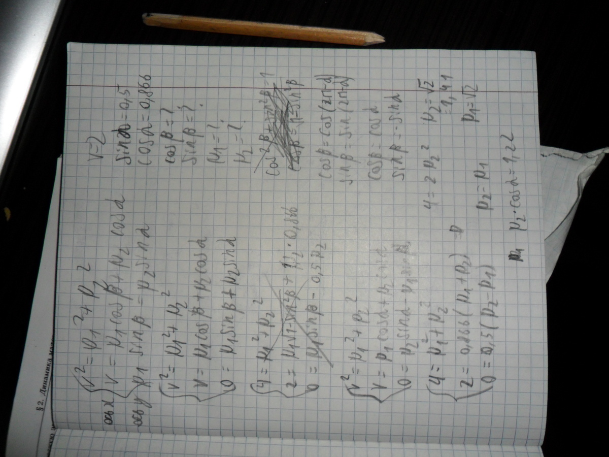 v=u1*cos(alpha)+u2*cos(beta): умножим на cos(alpha)