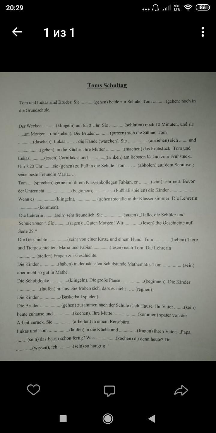 Wir lesen... (т.е. ученики знают, что им читать историю на 29