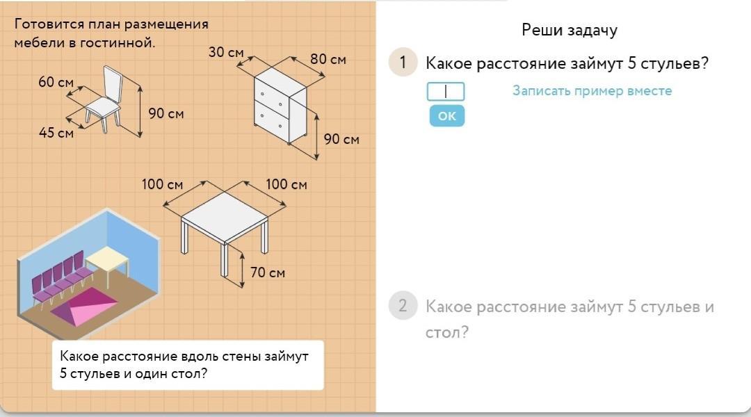 если ширина стула 45 см, то 45 умножаем на 5 итого: 225 см