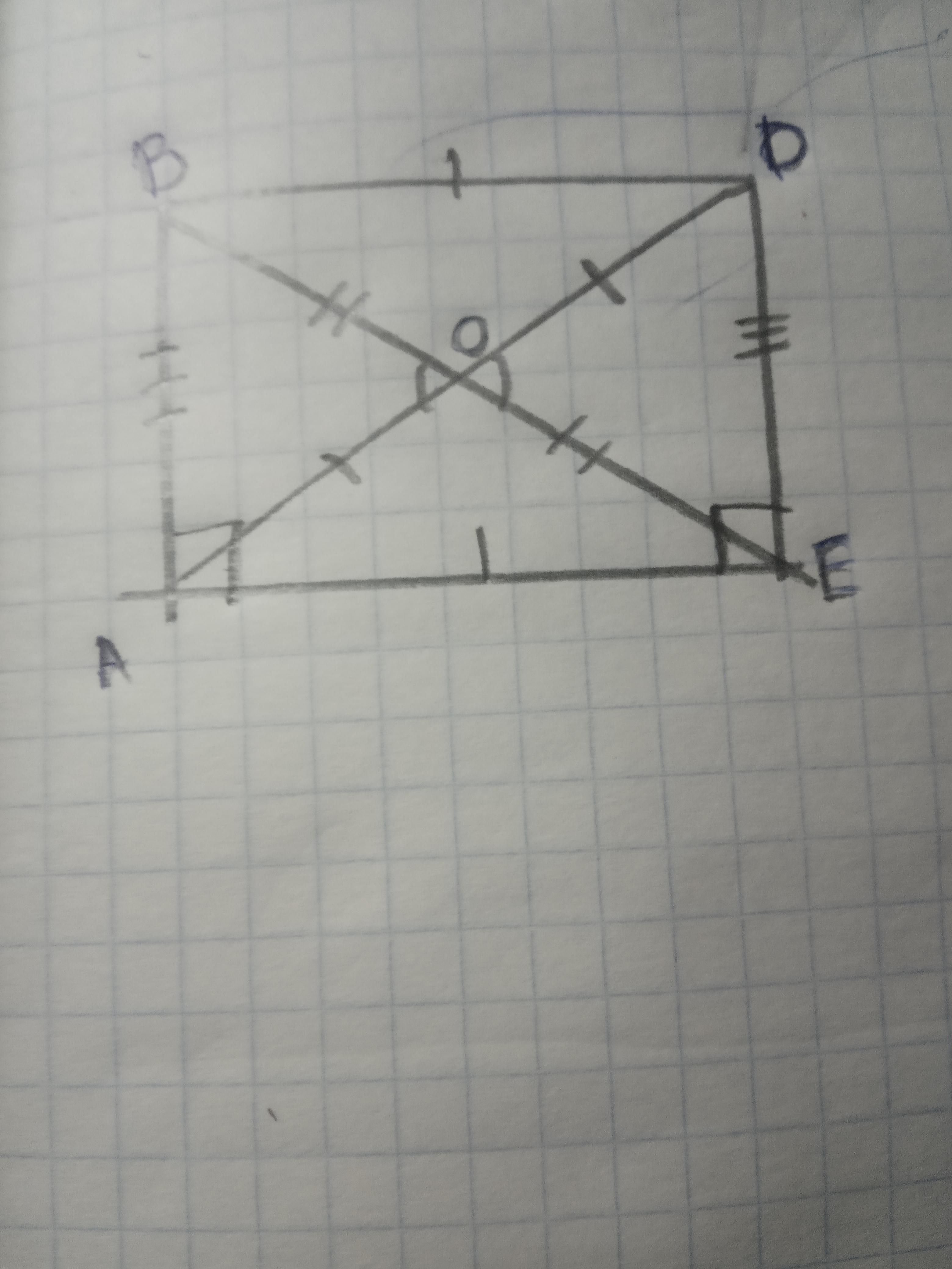 ΔBAO=ΔEODпо 3 ;ΔBDO=ΔEOA по 3 или 2;