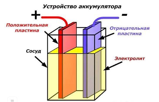 Ответ: два электрода (анод и катод) и между ними электролит.