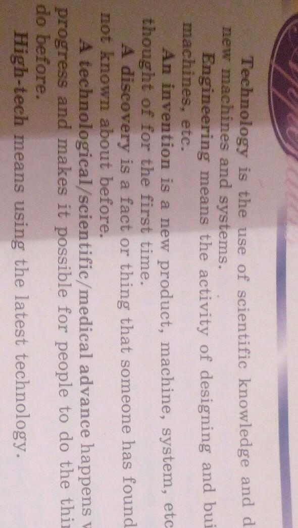 Винахід - це новий продукт, машина, система, про яку продумували вперше. Відкриття - це факт або річ, про яку хтось знайшов, про яку раніше не знали. Технологічний / науковий / медичний прогрес відбувається в прогресі і дає можливість людям робити тонких раніше. Високотехнологічні засоби використовують новітні технології.