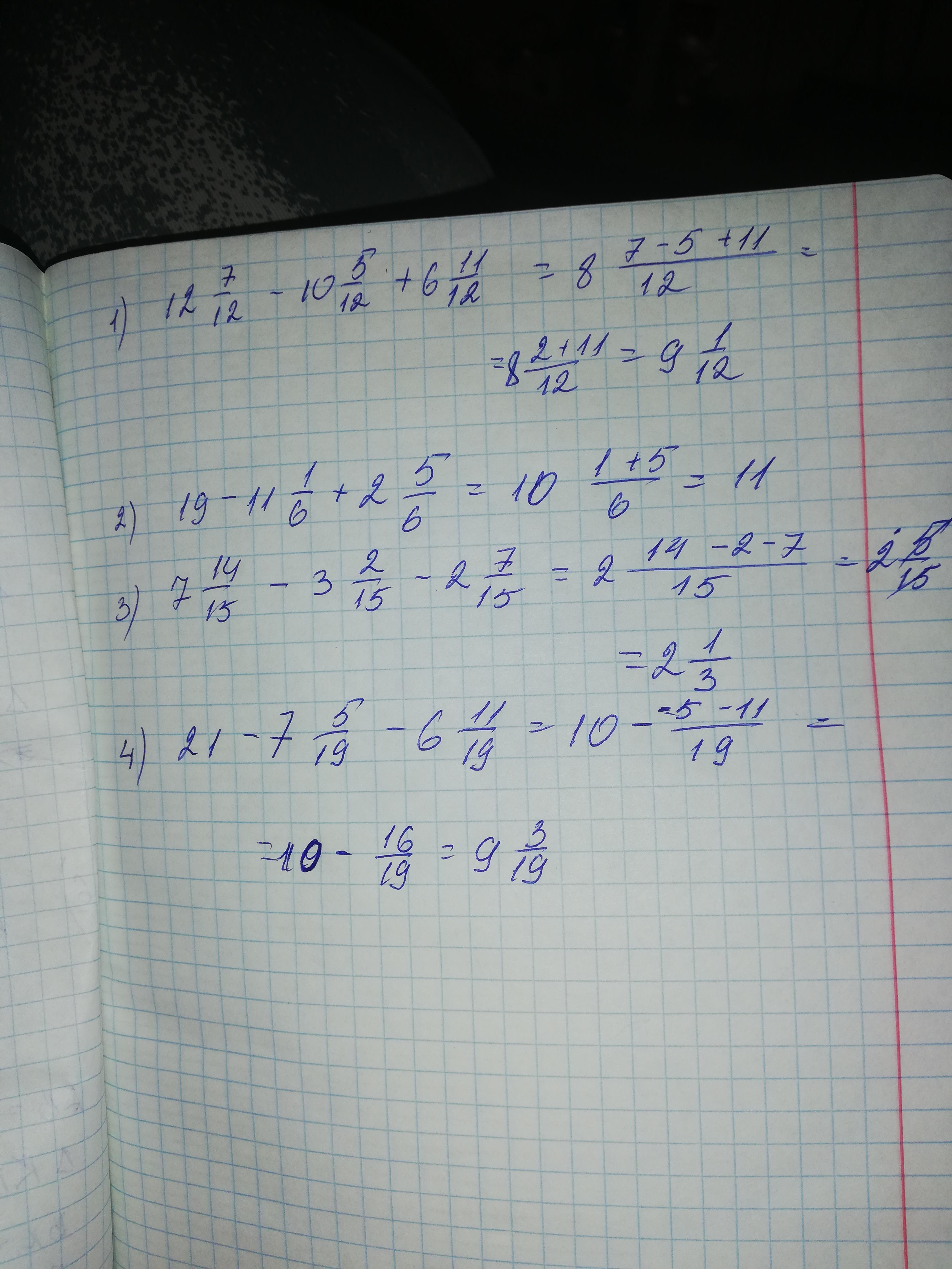 1. 12 7/12- 10 5/12+ 6 11/12= 12 7/12-10 5/12=2 2/12+ 6 11/12=8 13/12