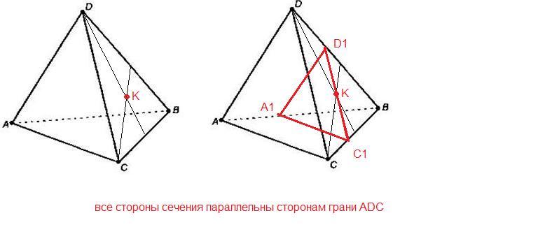 Постройте сечение тетраэдра abcd плоскостью, проходящей через точку пересечения медиан грани bcd параллельно грани acd