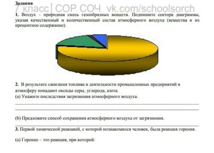 1)78,09% - азот: 20,95% - кислород: углекислый газ – 0,03%: прочие газы менее 1%