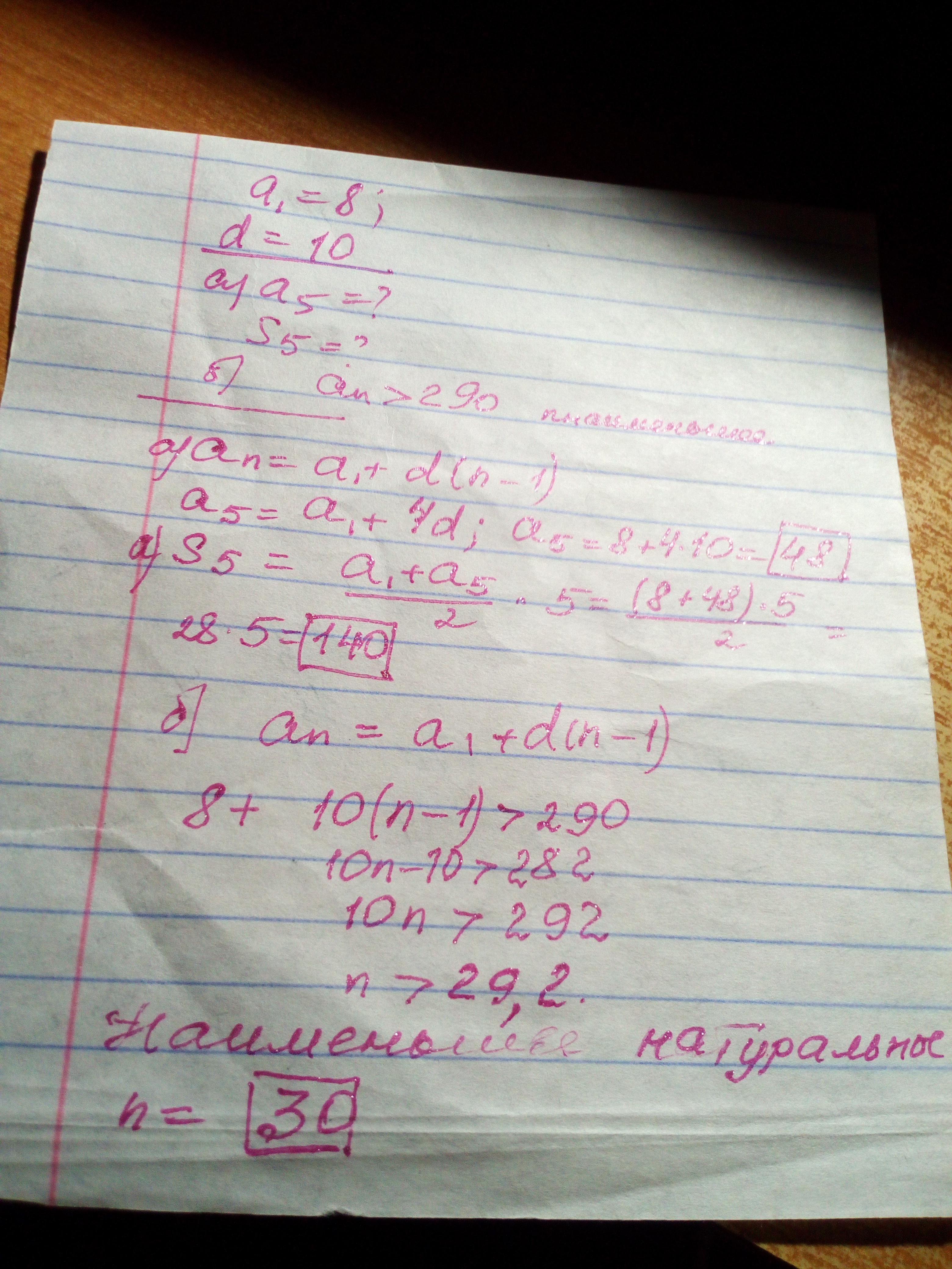б) Обозначим n-й член прогрессии через аn. Найдите наименьшее натуральное число n такое, что an>290.