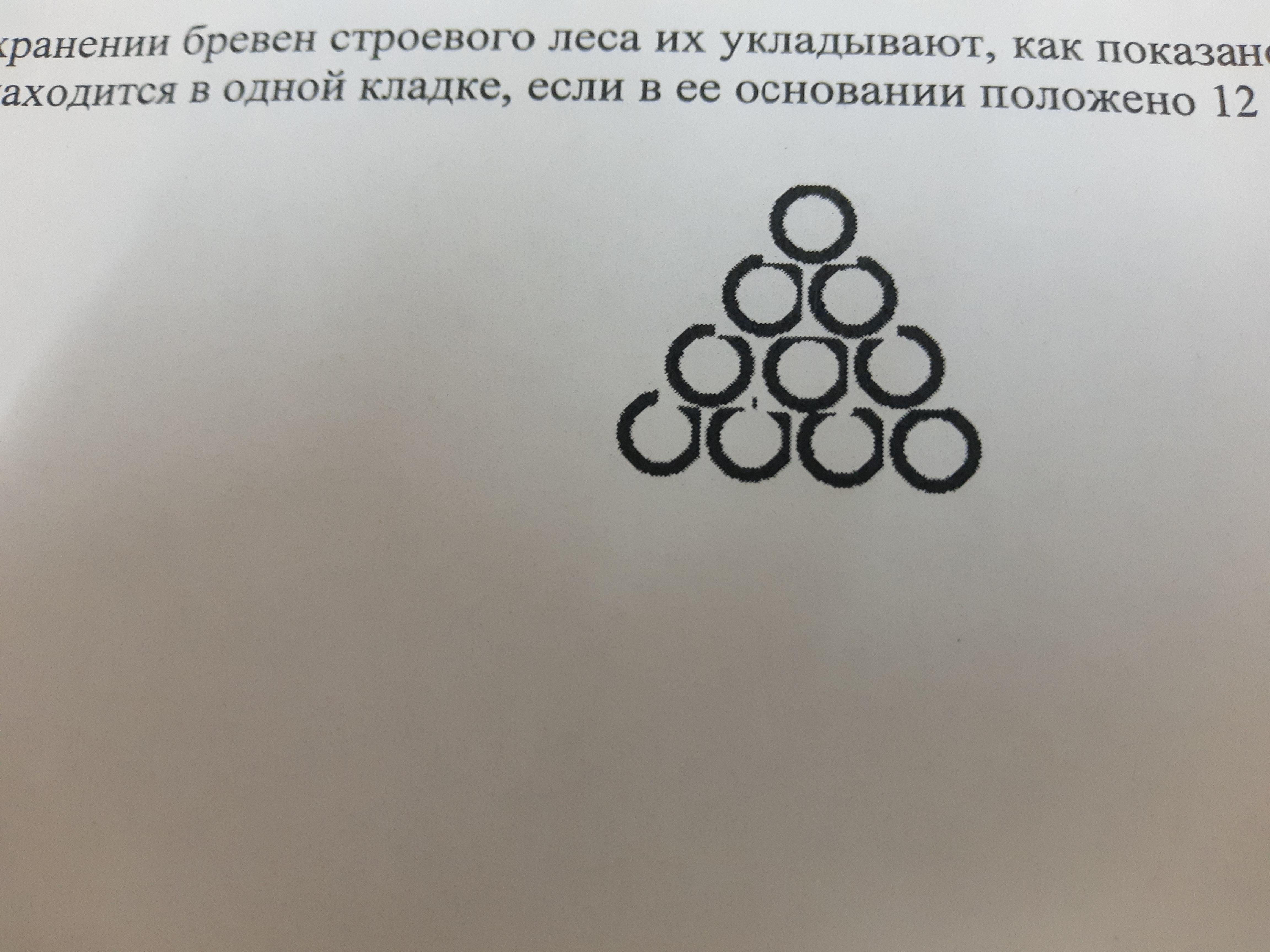 При хранении бревен строевого леса их укладывают как показано на рисунке сколько брёвен находится в одной кладке если в её основание положена 12 брёвен.