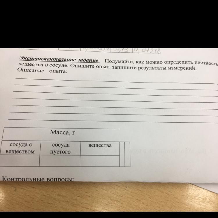 вещества в сосуде. Опишите опыт, запишите результаты измерений.