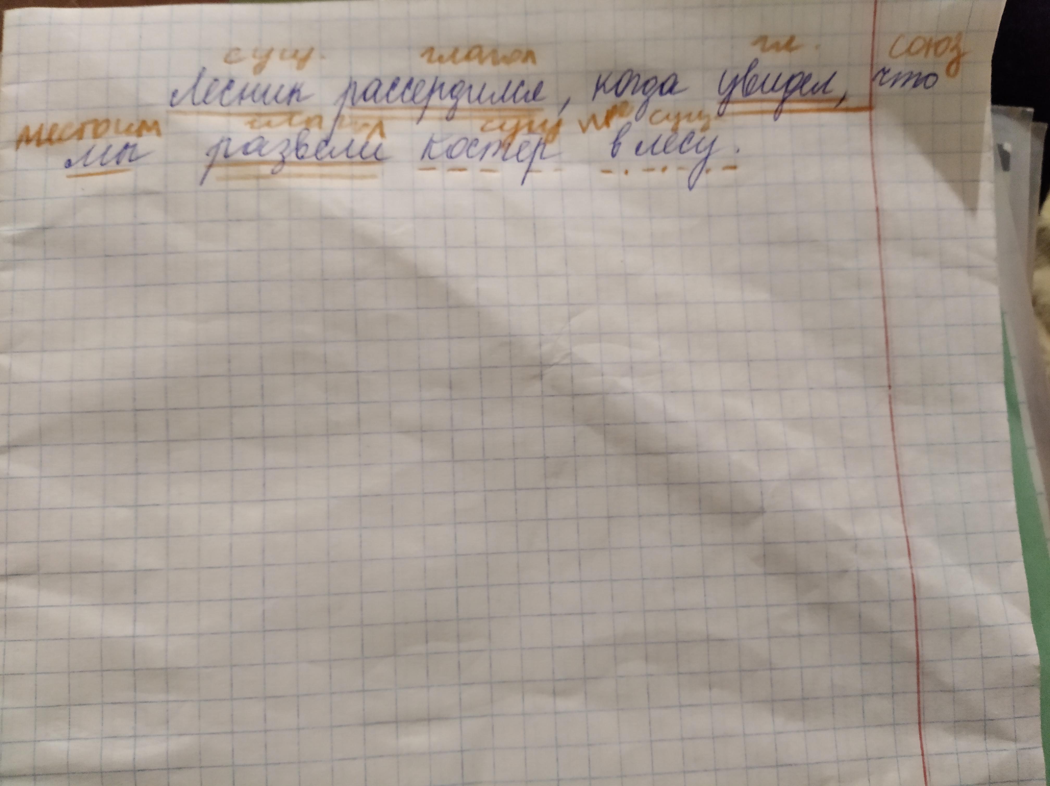 нужна помощь. составить предложение со словом ЛЕСНИК . разобрать по членам предложения.указать части речи. подчеркнуть подлежащее и сказуемое. выписать словосочитания - подлежащее и сказуемое не являются словосочетанием.