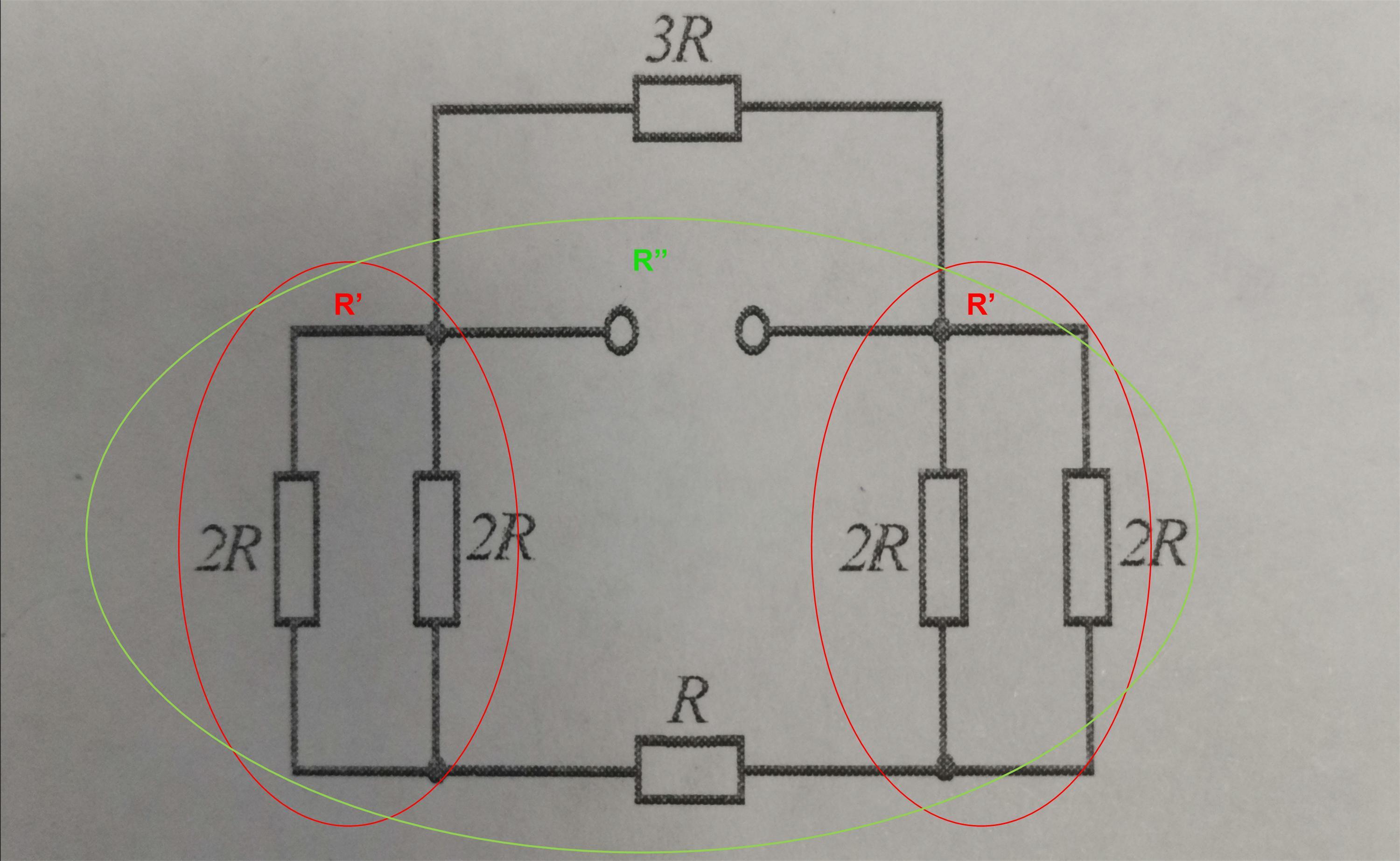 Rэкв=R"*3R/(R"+3R)=3R*3R/(3R+3R)=1,5R