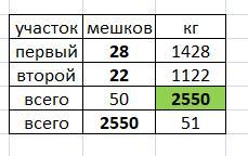 С первого участка собрали 28 мешков картофеля, а со второго - 22 таких же мешка и надо сначала узнать сколько кг картофеля в 1 мешке, но сначала узнаём сколько мешков всего:
