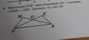 Треугольник DOB - равнобедренный,BD - основание,угол MDB= угол KBD.Докажите,что DM=BK