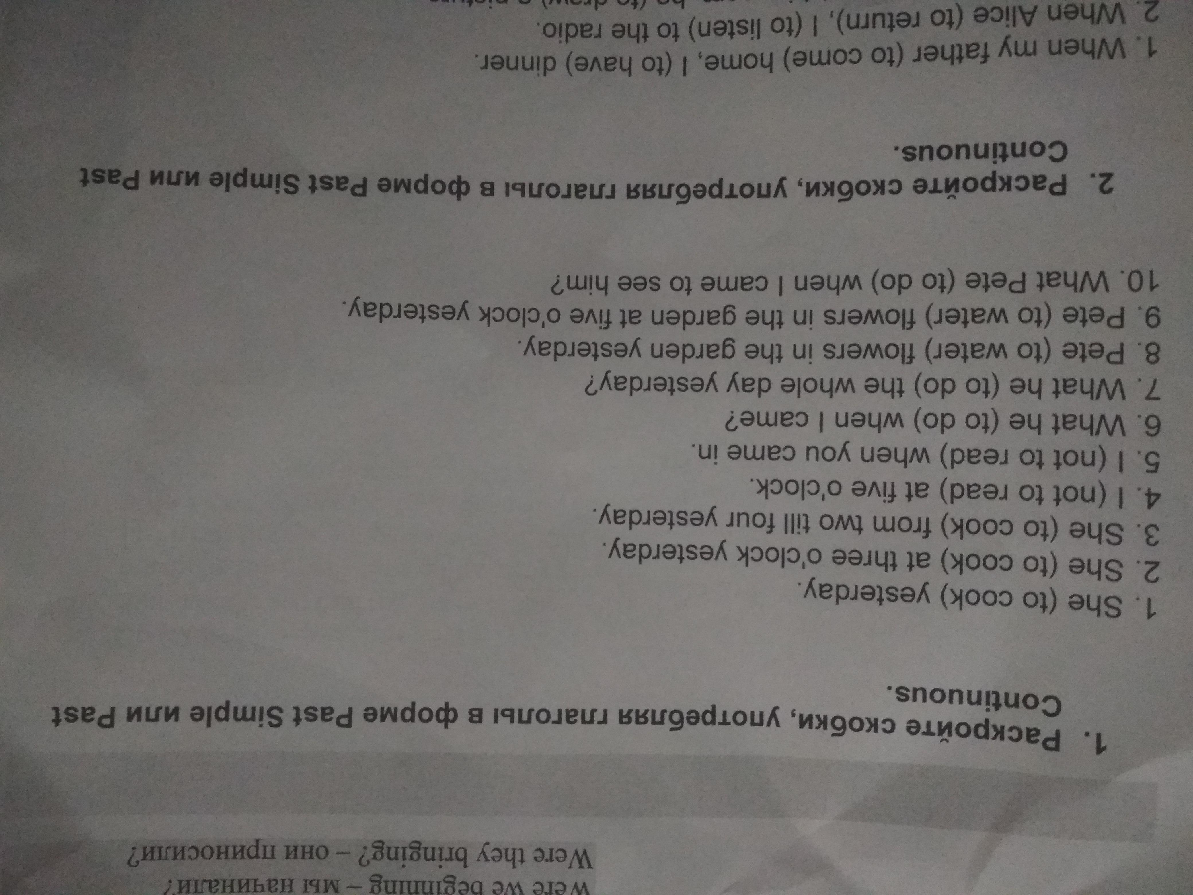 cooked, was cooking , was cooking , wasn't reading , didn't read , did , was doing , watered , was watering , did
