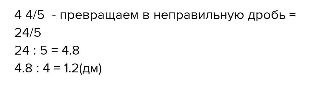 4 5\4:4=19\4*1\4=19\16=1 3\16 дм длина стороны