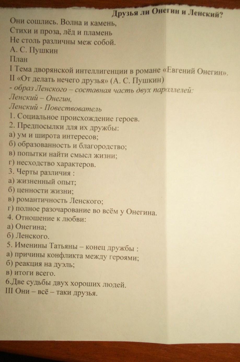 Евгений Онегин и Владимир Ленский были друзьями. Но Владимир приревновал свою возлюбленную Ольгу к Евгению и вызвал обидчика на дуэль. Онегин был более опытен в сражениях и застрелил Ленского. Так кем же приходятся друг другу Ленский и Онегин: друзьями или врагами?