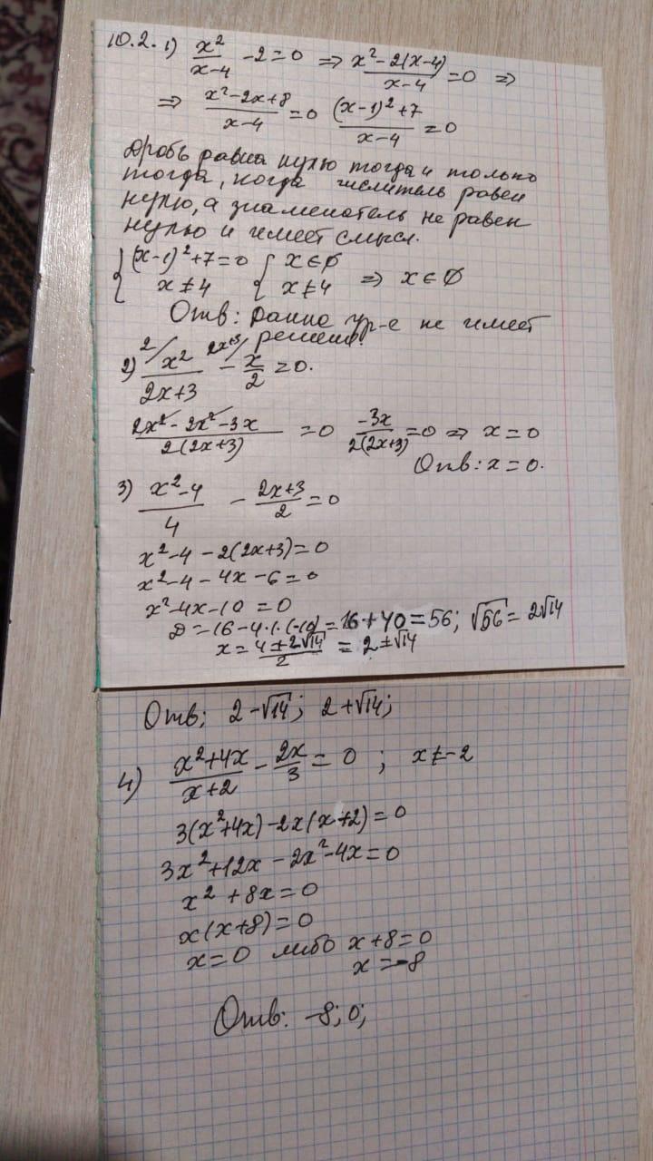 Ответ: 1) нет корней; 2) 0; 3) 2-√14; 2+√14; 4) -8;0;