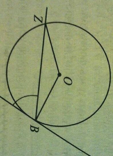 Прямая касается окружности в точке В. Точка О - центр окружности. Хорда BZ образует с касательный угол, равный 79°. Найдите величину угла OZB. Ответ дайте в градусах.
