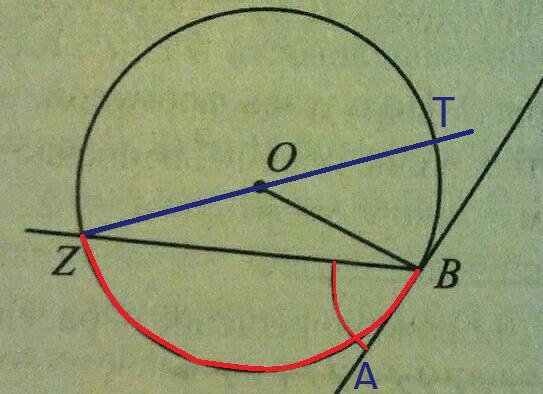 Пусть ZT - диаметр и O∈ZT, тогда ∪ZT = 180°, как половина окружности;