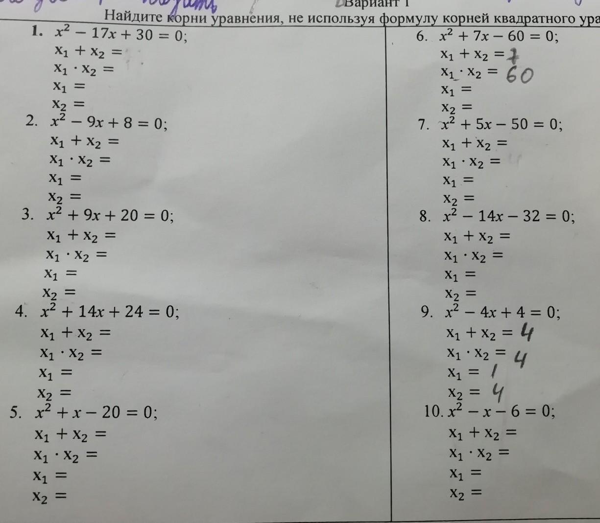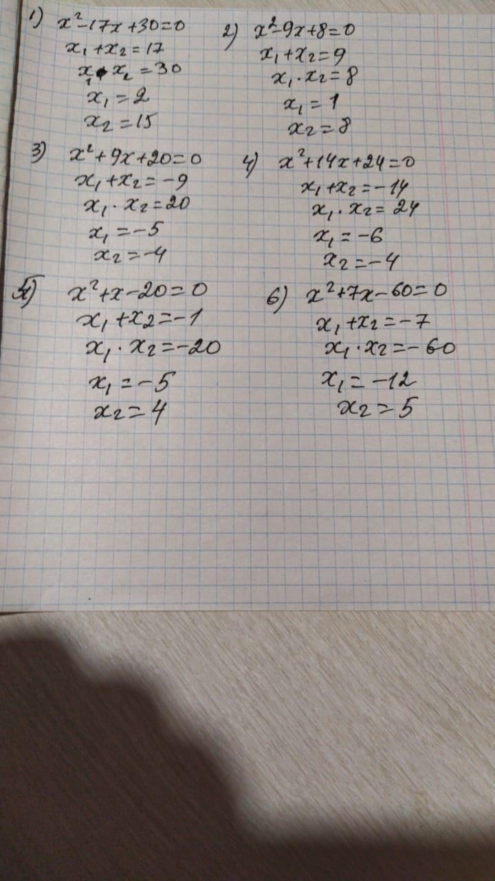 В первом например надо подобрать устно два числа, которые при сложении дают 17, а при умножении 30. таковыми могут только 2 и 15. Так каждое. здесь больше объяснять нечего. Спасибо Виету