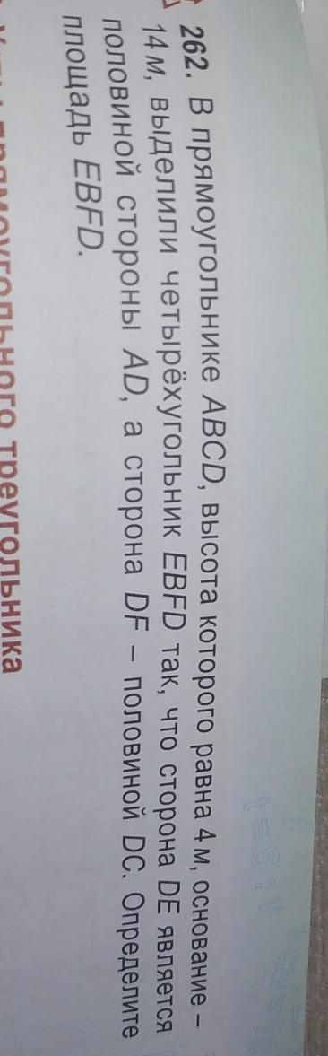 тут сказано что BC равно 4 м и DC 14 м значит ед половина BC то есть 2 м а DF половина DC то есть 7 м значит площадь равна на 14 м квадратном