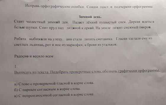 Ребята выбежали на улицу, они стали лепить снеговика. Глазки сделали ему из светлых льдинок, рот и нос из морковки, а брови из уголков