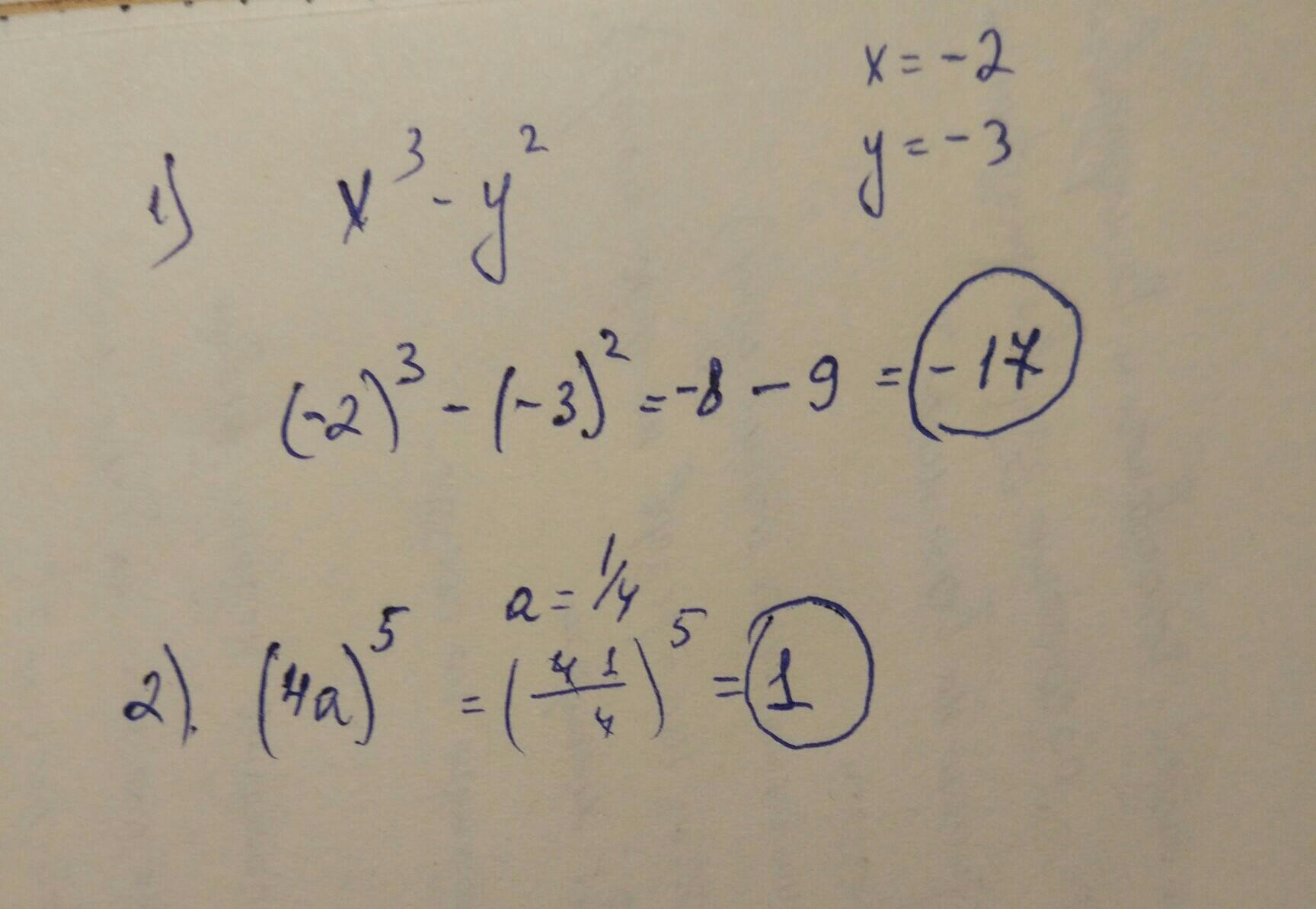 X в третьей степени -у во второй степени, где х=-2, а у=-3 найди значение выражение