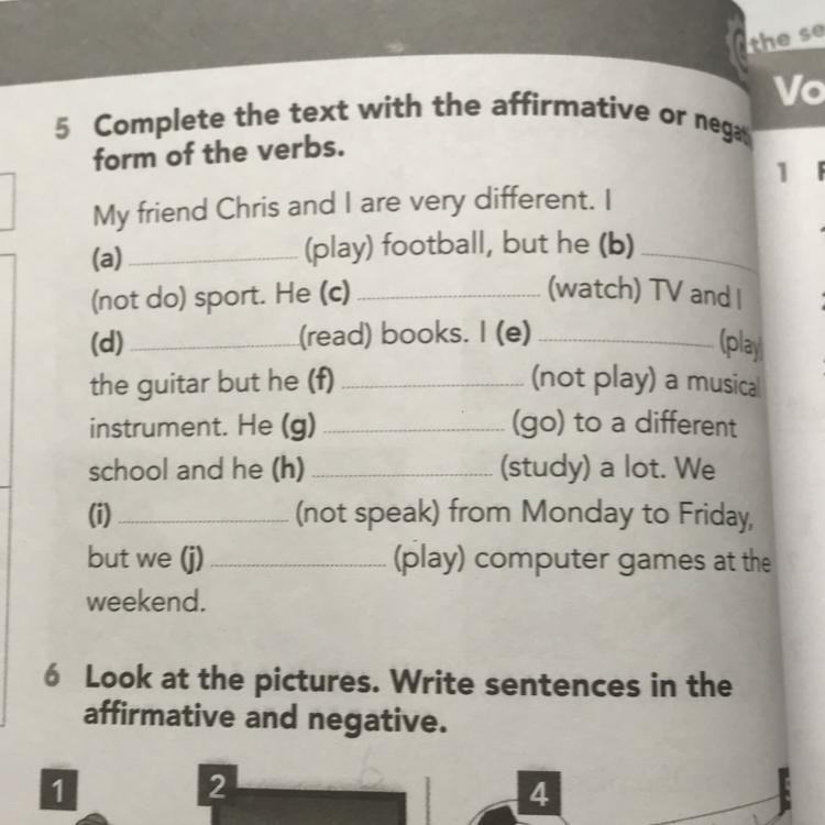 a play b does not do c watches d read e play f does not play g goes h studies i don't speak j play