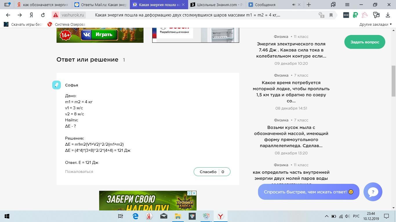 ΔЕ = m1m2(V1+V2)^2/2(m1+m2). Что это за формула? какие законы?Надо ли делать рисунок, проекцию на оси?
