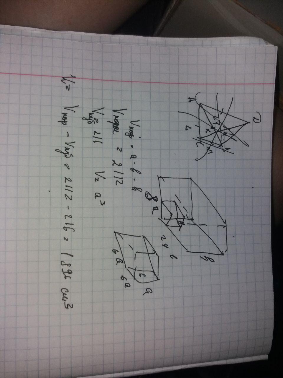 з дерев'яного бруска, який має форму прямокутного паралепіпеда,довжина якого 24 см, ширина в 3 рази менша за довжину, а висота 11 см, вирізали куб з ребром 6 см. знайти об'єм частини, яка залишилася