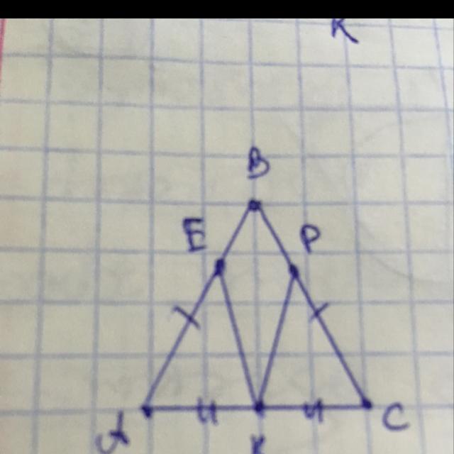 Вот рисунок к задаче ,,На боковых сторонах AB и BC равнобедренного треугольника ABC отмечены точки Е и Р. К - середина АС, углы АКЕ и СКР равны, КЕ-6см.Чему равна длина КР?"