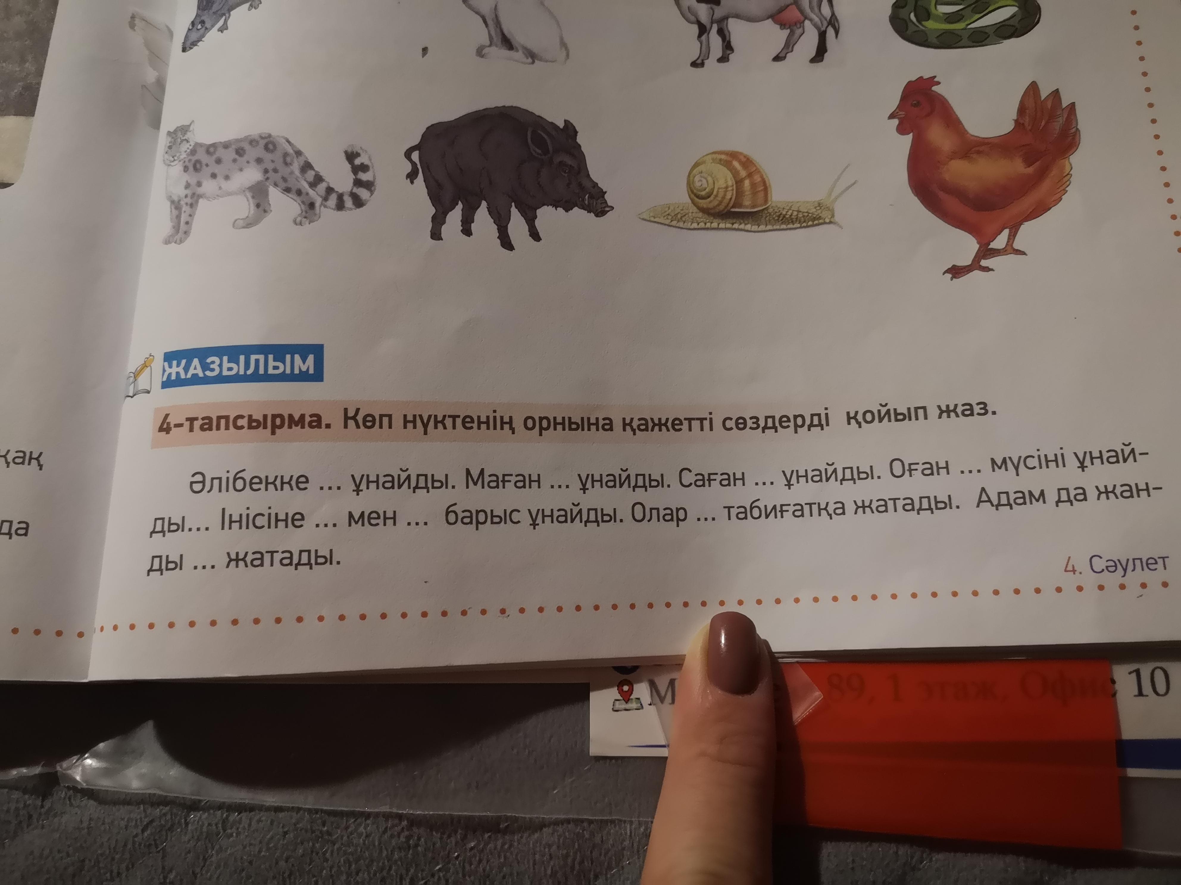 просто подставьте вместо пробелов названия животных на казахском, больше ничего не требуется