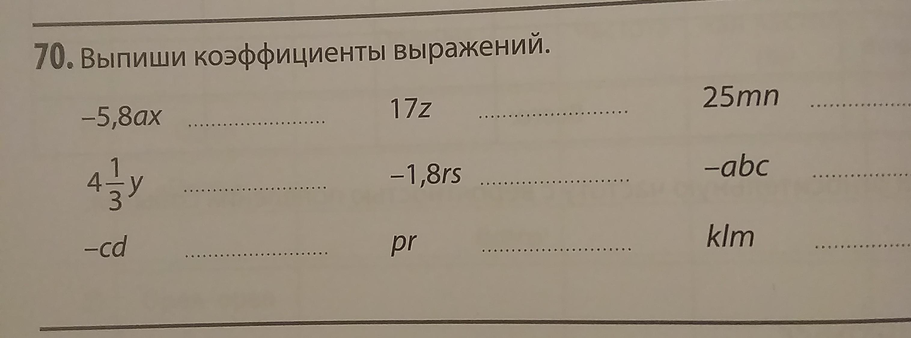 просто выписываешь что стоит перед буквой , если нет ничего значит коэффициент 1 если перед буквами стоит - (только ) значит коеффициент -1