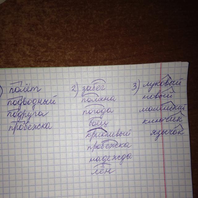 Распредели слова по столбиком в первый записывать слова с орфограммы в приставке во второй с орфограммы в корне в третий с орфограммы в суффиксе полёт подводный забег луковый лён новый маленький подруга поляна погода ключик крикливый пробежка надежда боец язычок