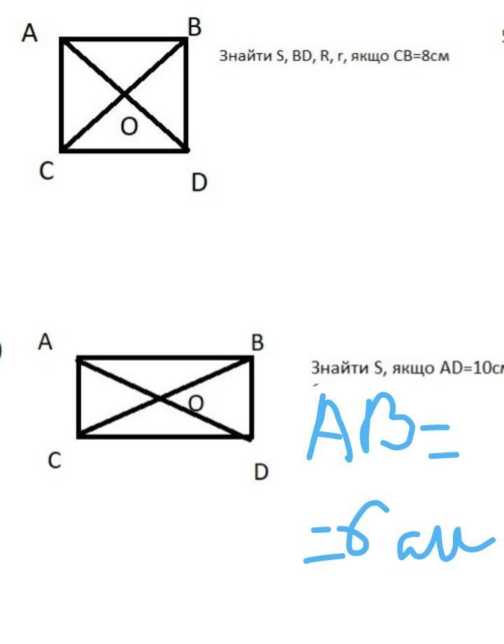 Номер 2. AB=CD=6, AD^2=CD^2+CA^2, AC=8 , S=AC×CD=8×6=48