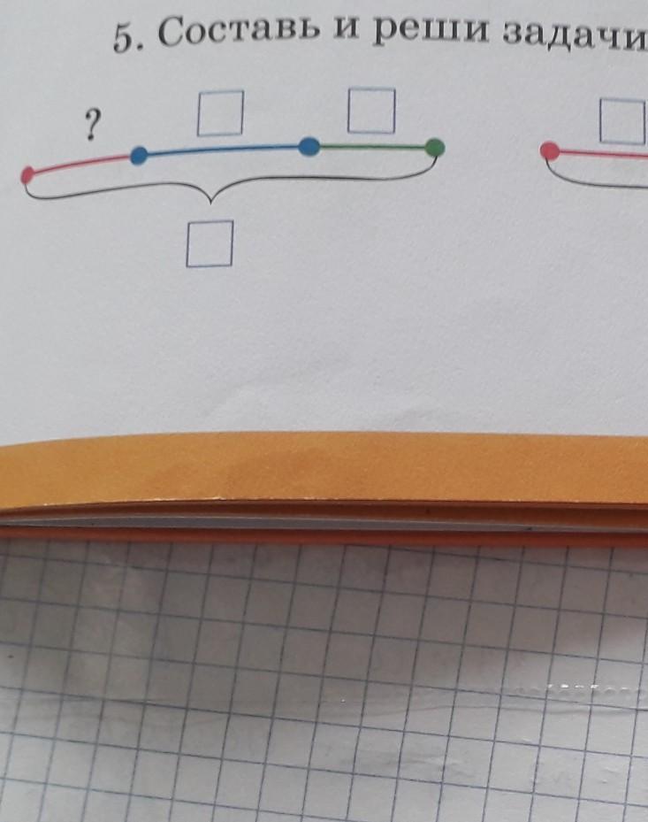 Синие 5 км зелёная 2 км общее число 10 значит красная полоска 3 км