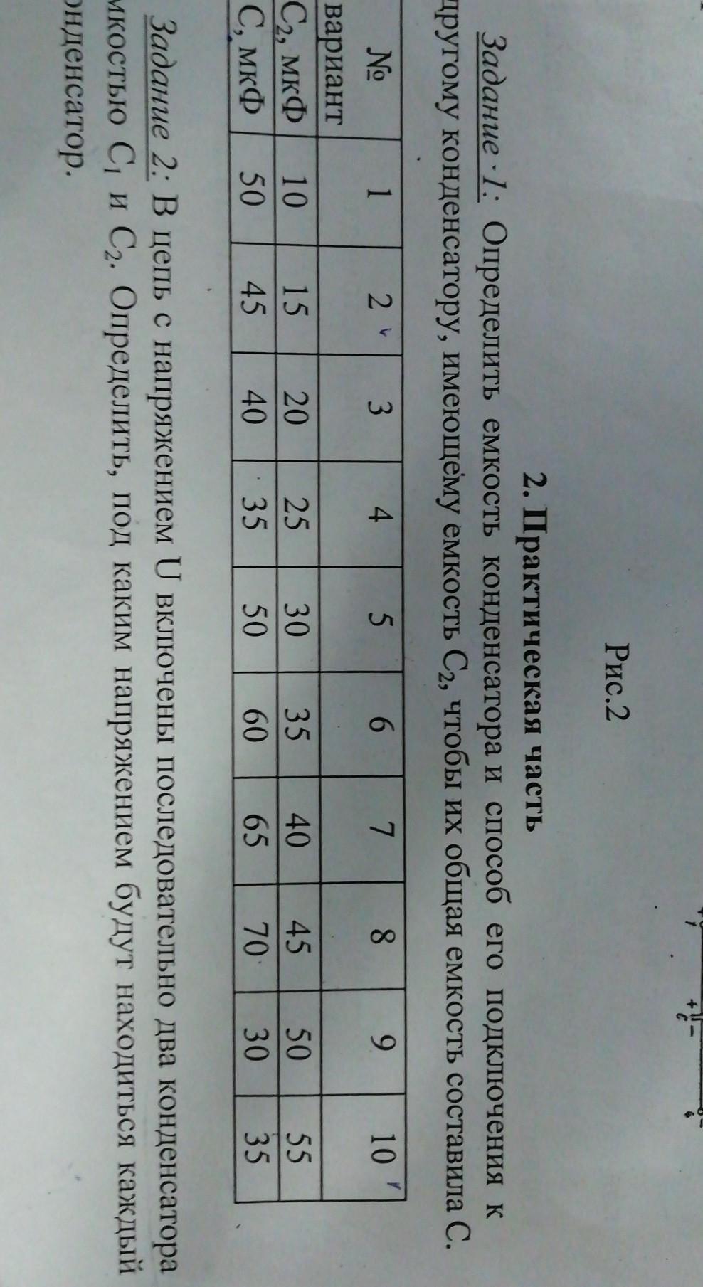 определить ёмкость конденсатора и способ его подключения к другому конденсатору, имеющему ёмкость С2, чтобы их общая ёмкость составила С.