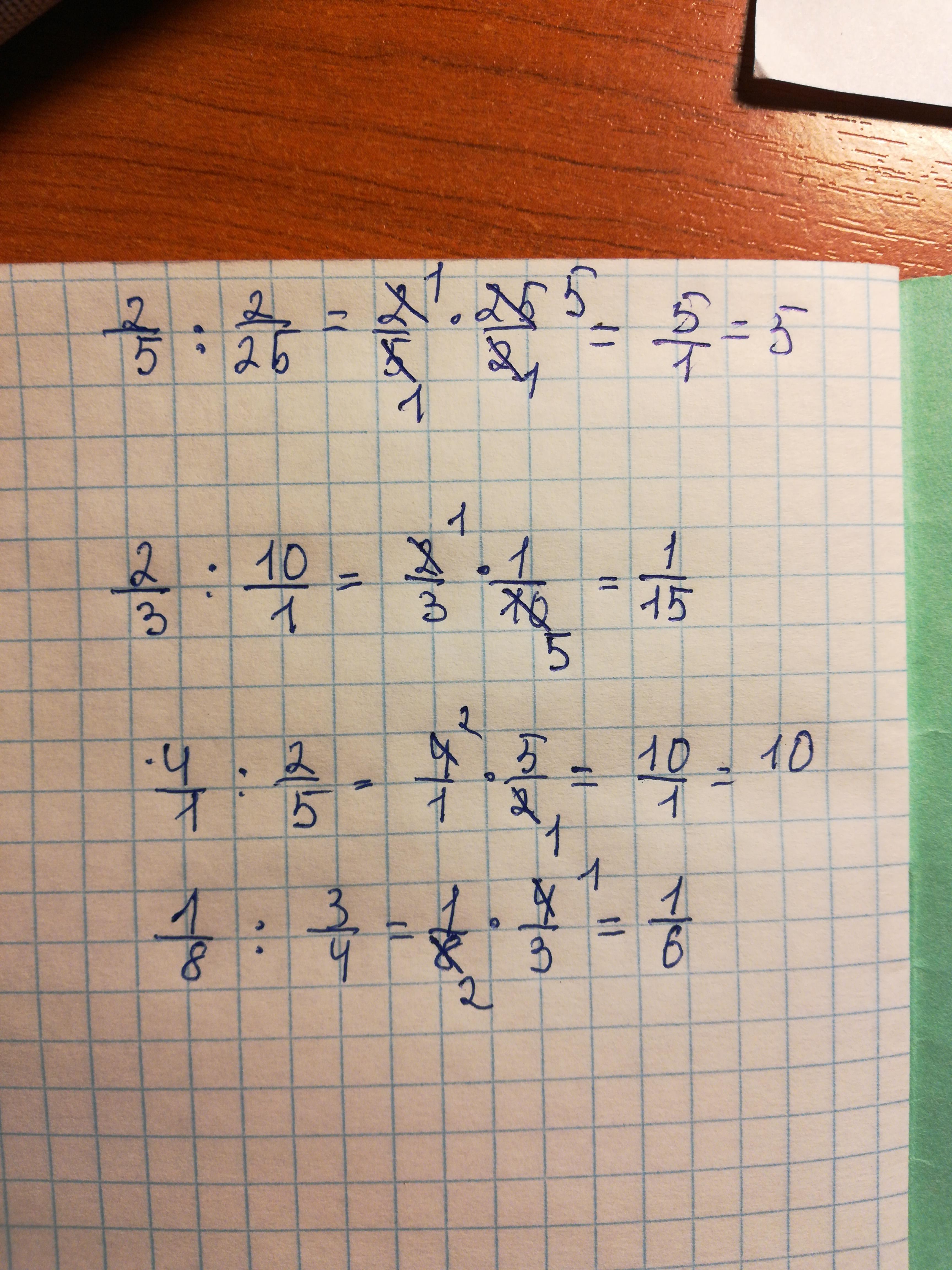 Если мы делим дробь, то мы последнюю дробь переворачиваем и умножаем на неё, все что сокращается сокращаем