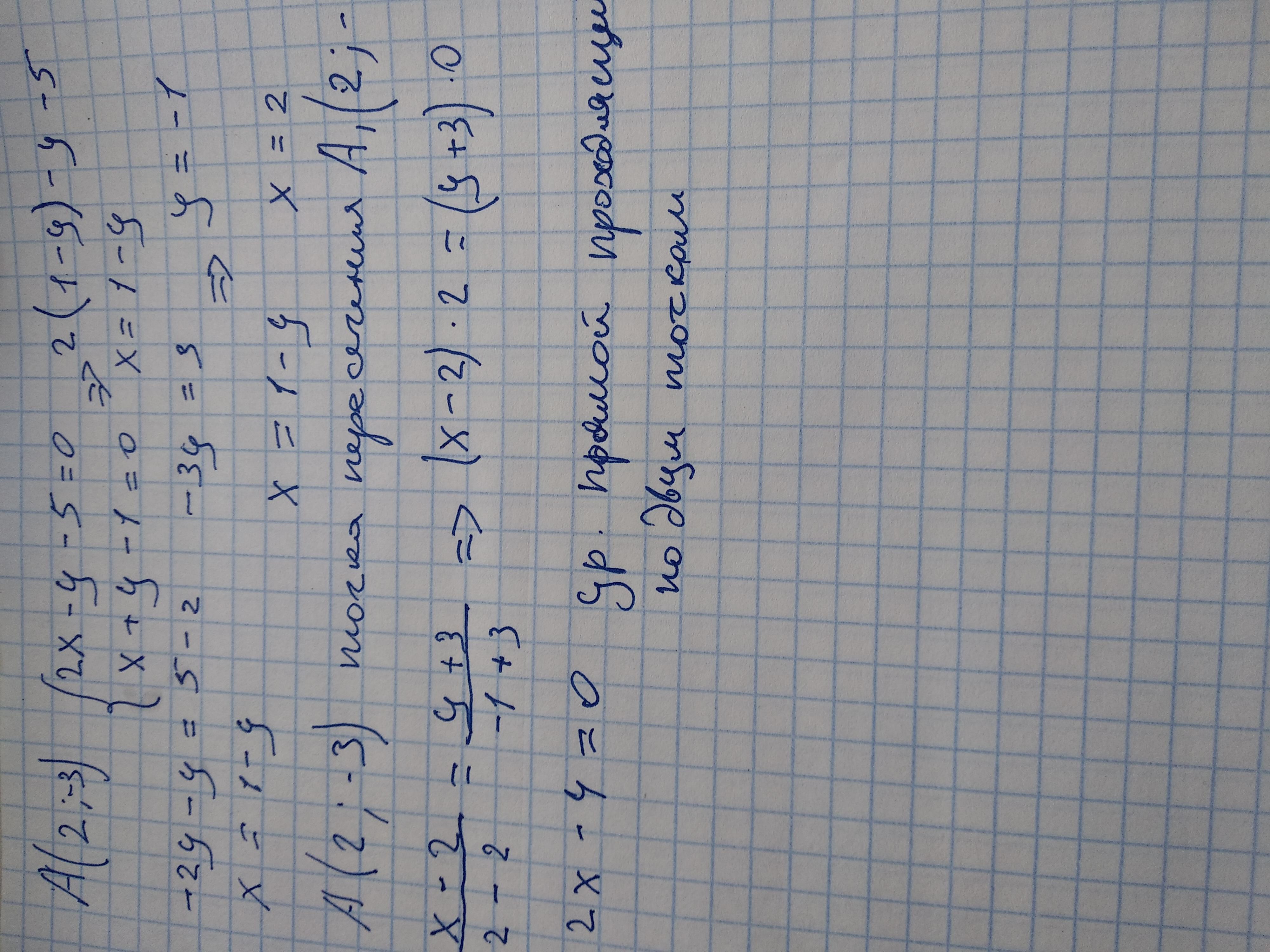 Найти уравнение прямой, проходящей через точку А(2,-3) и точку пересечения прямых 2х-у=5 и х+у=1 (Ответ: х=2)