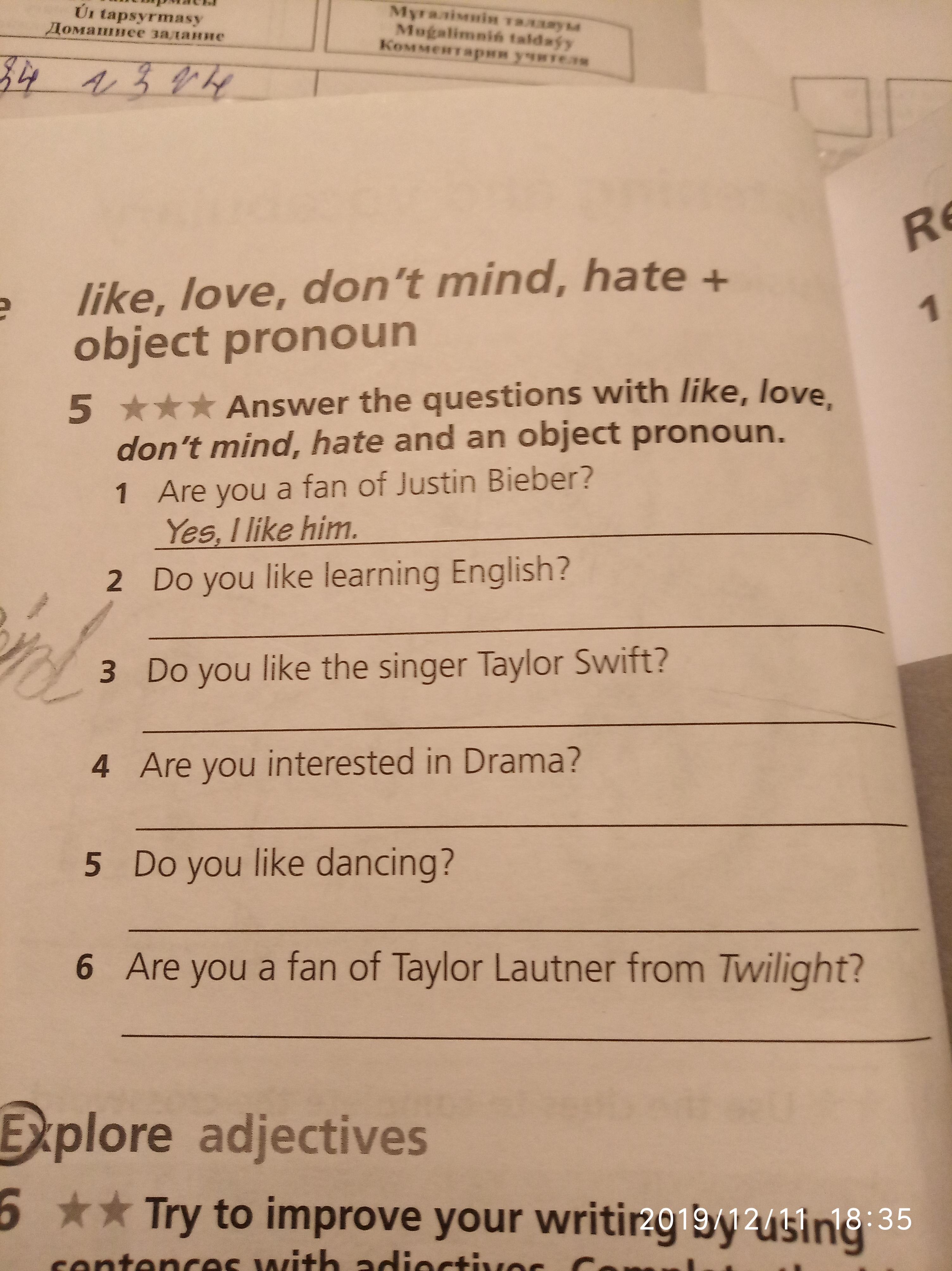 2) yes, i do 3) no, i dont like her 4)yes, i intersted in drama 5) no, i dont like dancing 6) no, i dont