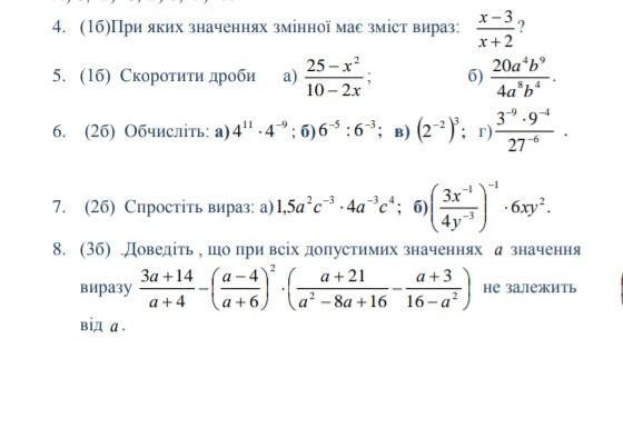 5. a) \frac{5 + x}{2} ; б) \frac{5 {b}^{5} }{a {}^{4} } . 6. а) {4}^{2} б)\frac{1}{36} в)