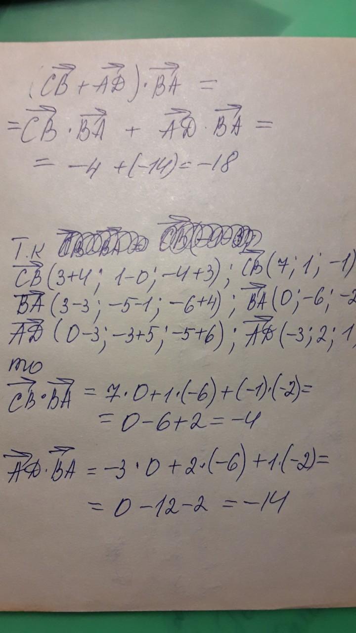 Даны точки A(3,-5,-6); B(3,1,-4); C(-4,0,-3); D(0,-3,-5). Вычислите то, что на картинке (векторы).