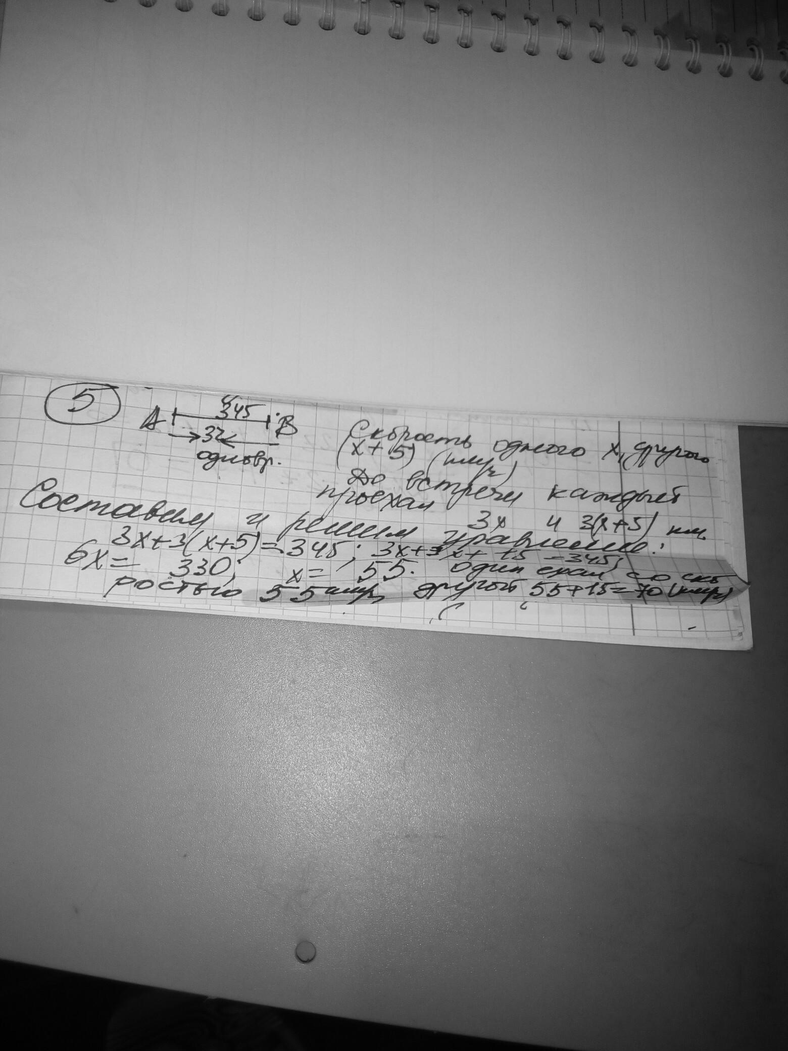 Расстояние между пунктами A и B равно 345 км. Одновременно навстречу друг другу из этих пунктов выехали два автомобиля и встретились через 3 часа. Найдите скорость каждого автомобиля, если скорость одного из них на 5 км/ч меньше скорости второго.