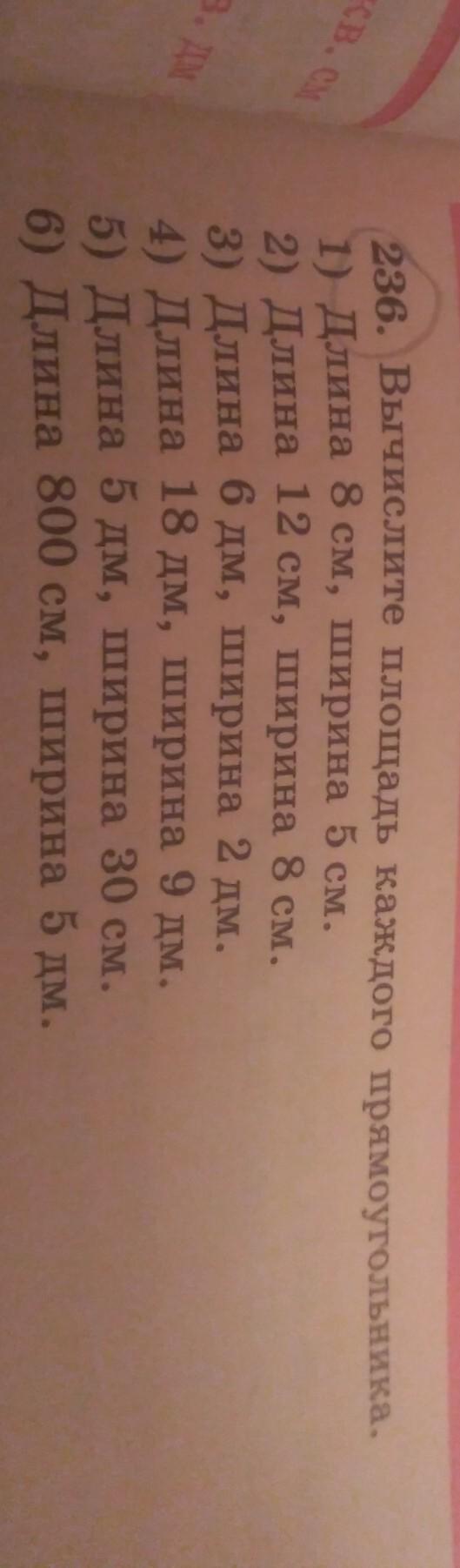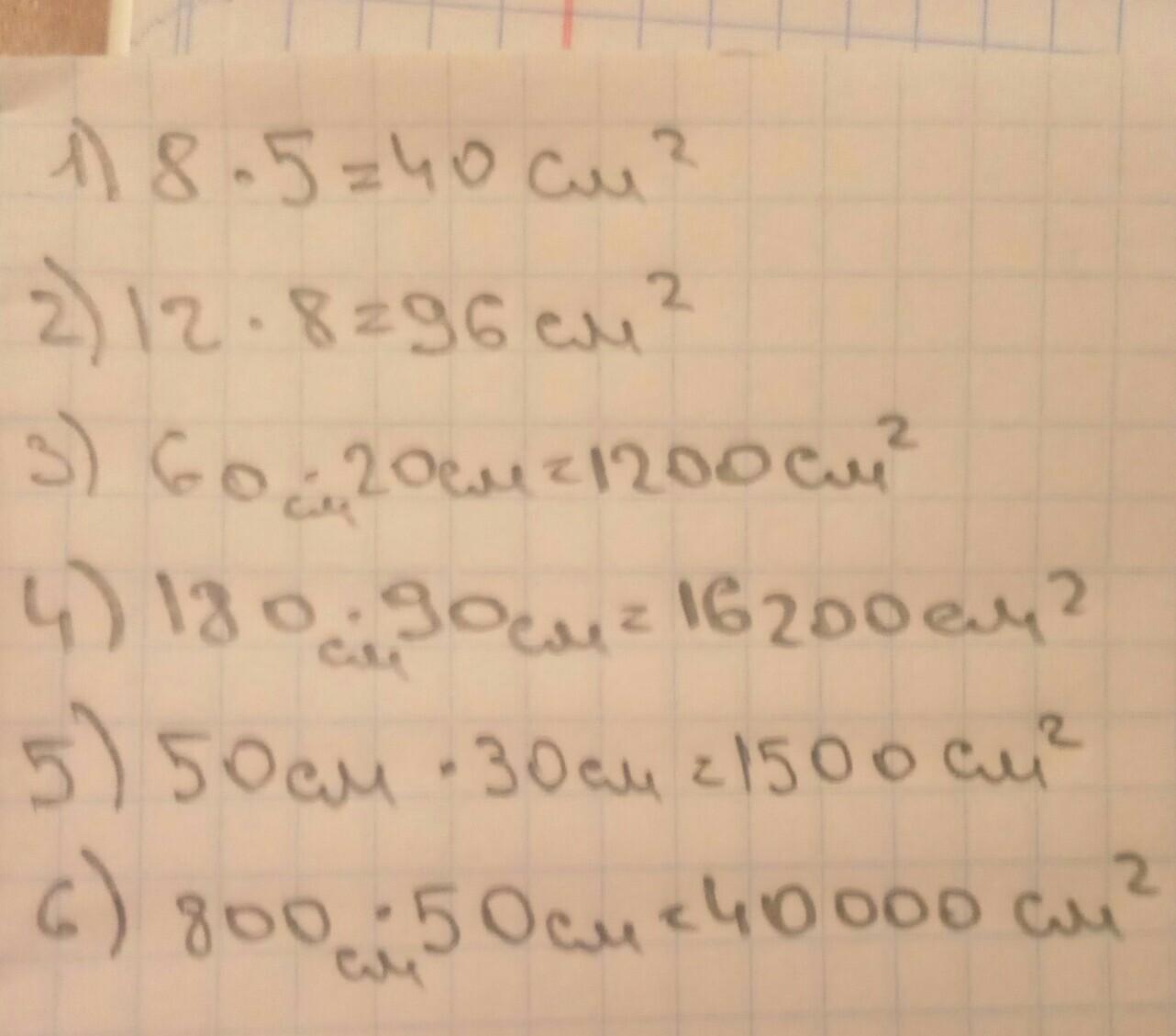 длину умнож на ширину ответ запиши в квадратных метрах,или сантиметрах то что в задании