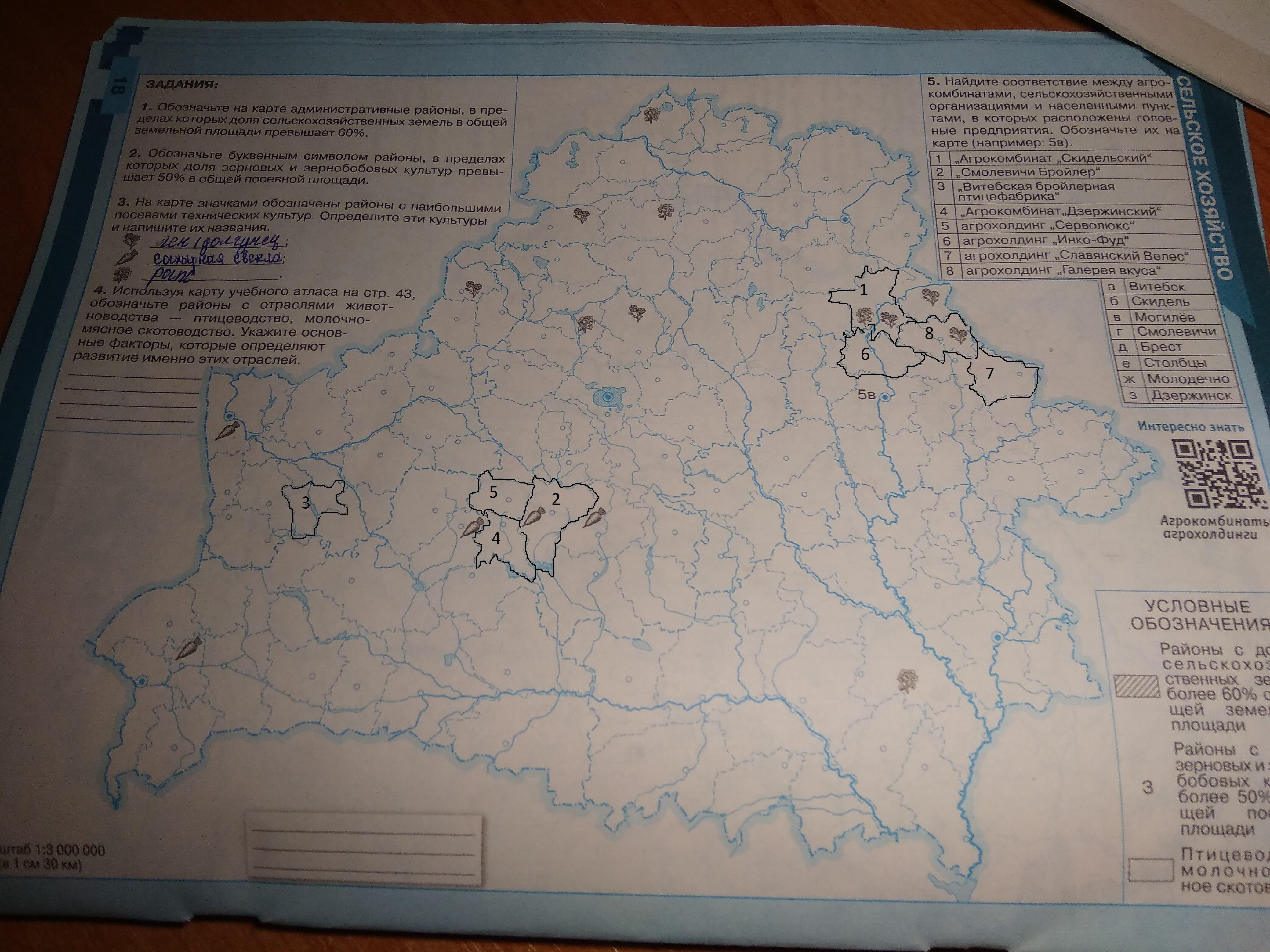 Обозначьте на карте административные районы, в пределах которых доля сельскохозяйственных земель в общей земельной площади превышает 60%.