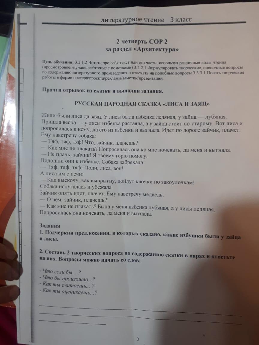 Составь 2 творческих вопроса в парах и ответьте на них по содержанию сказки Лиса и заяц
